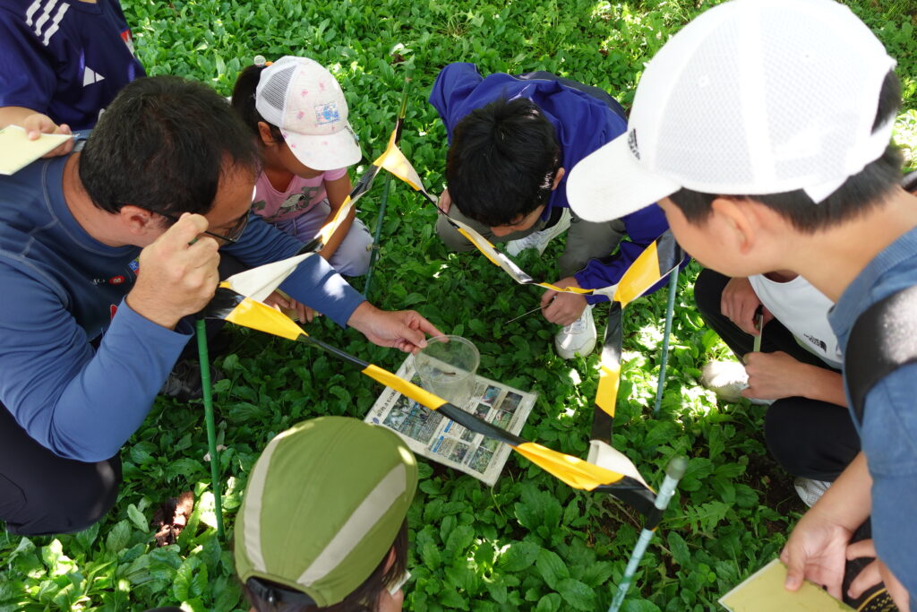 フィールドワークでは、トラップを駆使したり、虫取り網を持って動き回ったりするなど、積極的に取り組む塾生の様子が見られました。