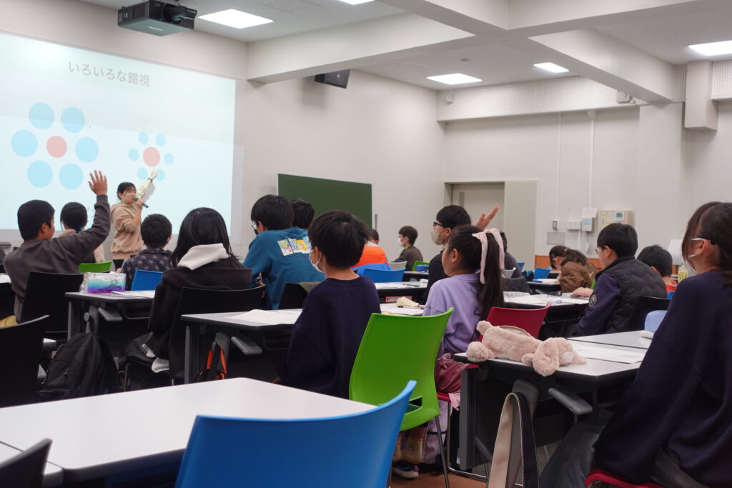今回の学生メンター企画では、「心理学で探る『見る・読む・覚える』の科学」をテーマに、錯視に関する講義と実践活動を行いました。